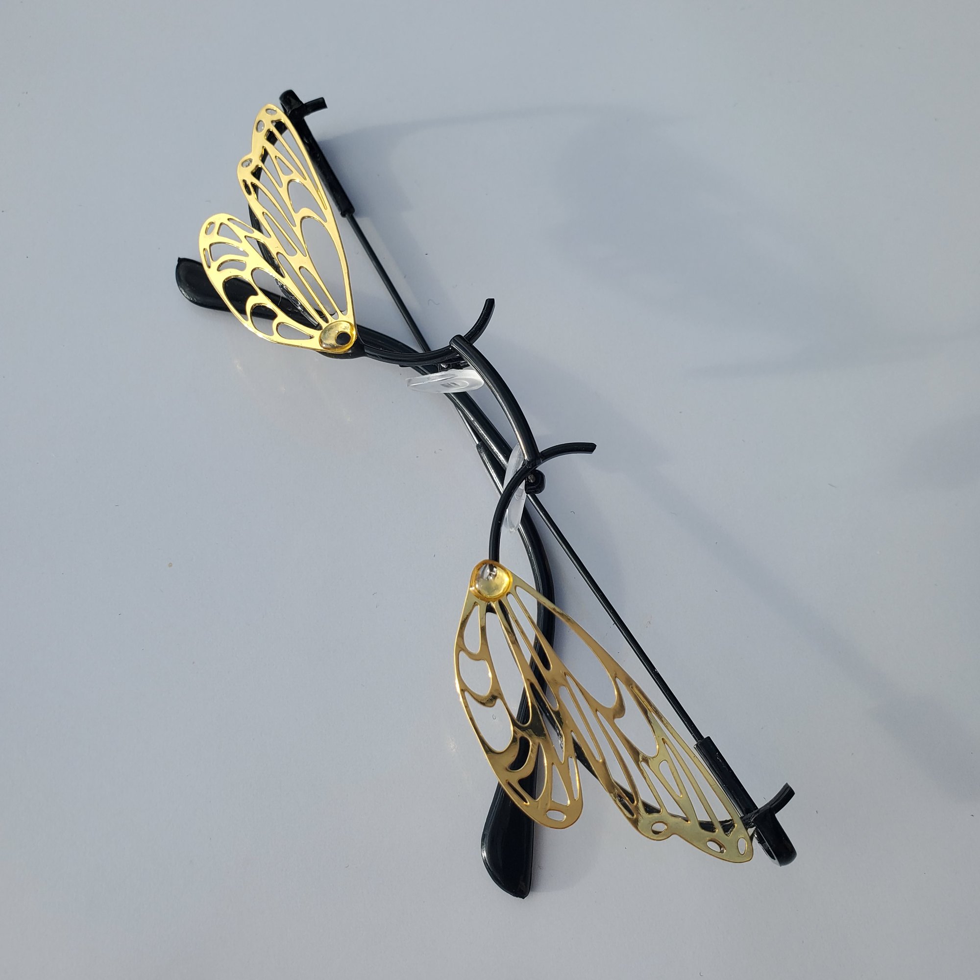 Serve ethereal vibes with our lenses-free Butterfly Fae Frames. Sleek black meets shimmering gold for a look that's equal parts fantasy and edge. Lightweight, bold, and ready to flex at festivals, shoots, or wherever you slay.